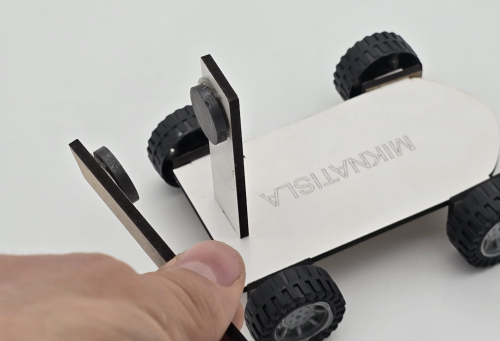 Bu modelde mıknatıslar arasında oluşan çekme ve itme kuvveti, arabanın hareket etmesini sağlayan temel etkendir. Öğrenciler, mıknatısların birbirine yaklaşması veya uzaklaşması durumunda hareketin nasıl değiştiğini gözlemleyerek temassız kuvvetlerin etkisini somut biçimde keşfeder.